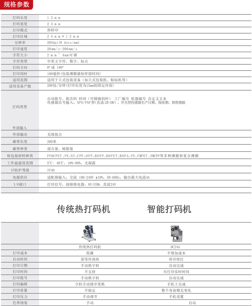 DC24A是專(zhuān)門(mén)為老式熱打碼機(jī)的升級(jí)換代而設(shè)計(jì)的智能打碼產(chǎn)品。即開(kāi)即用,高質(zhì)量的打印效果可以滿(mǎn)足您豎式包裝機(jī)、貼標(biāo)機(jī)等各種軟包裝的打碼需求。您可以用該設(shè)備輕松完成生產(chǎn)日期、保質(zhì)期、系列號(hào)、批次號(hào)、時(shí)間(精確到秒)等信息的全自動(dòng)打印。